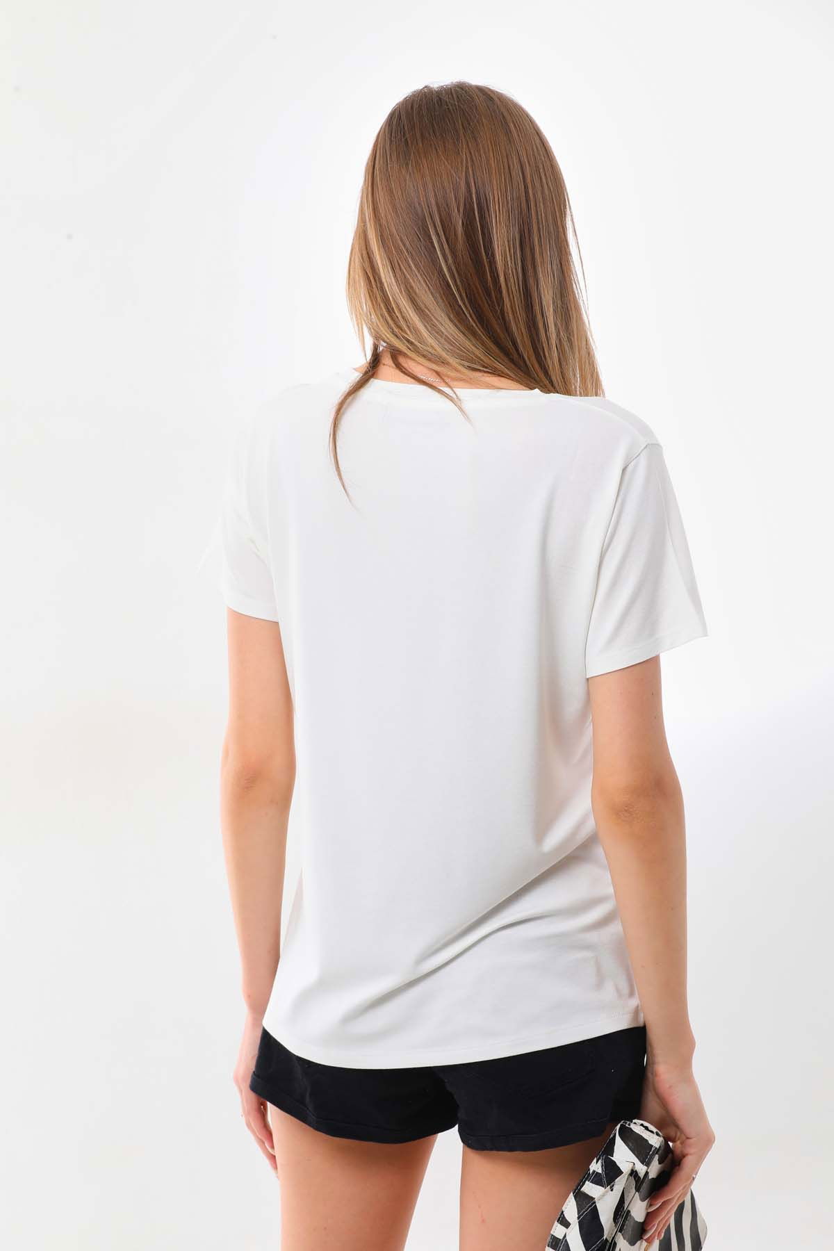 Sistas Kadın Zebra Desenli Kısa Kol Bluz 23118 Ekru