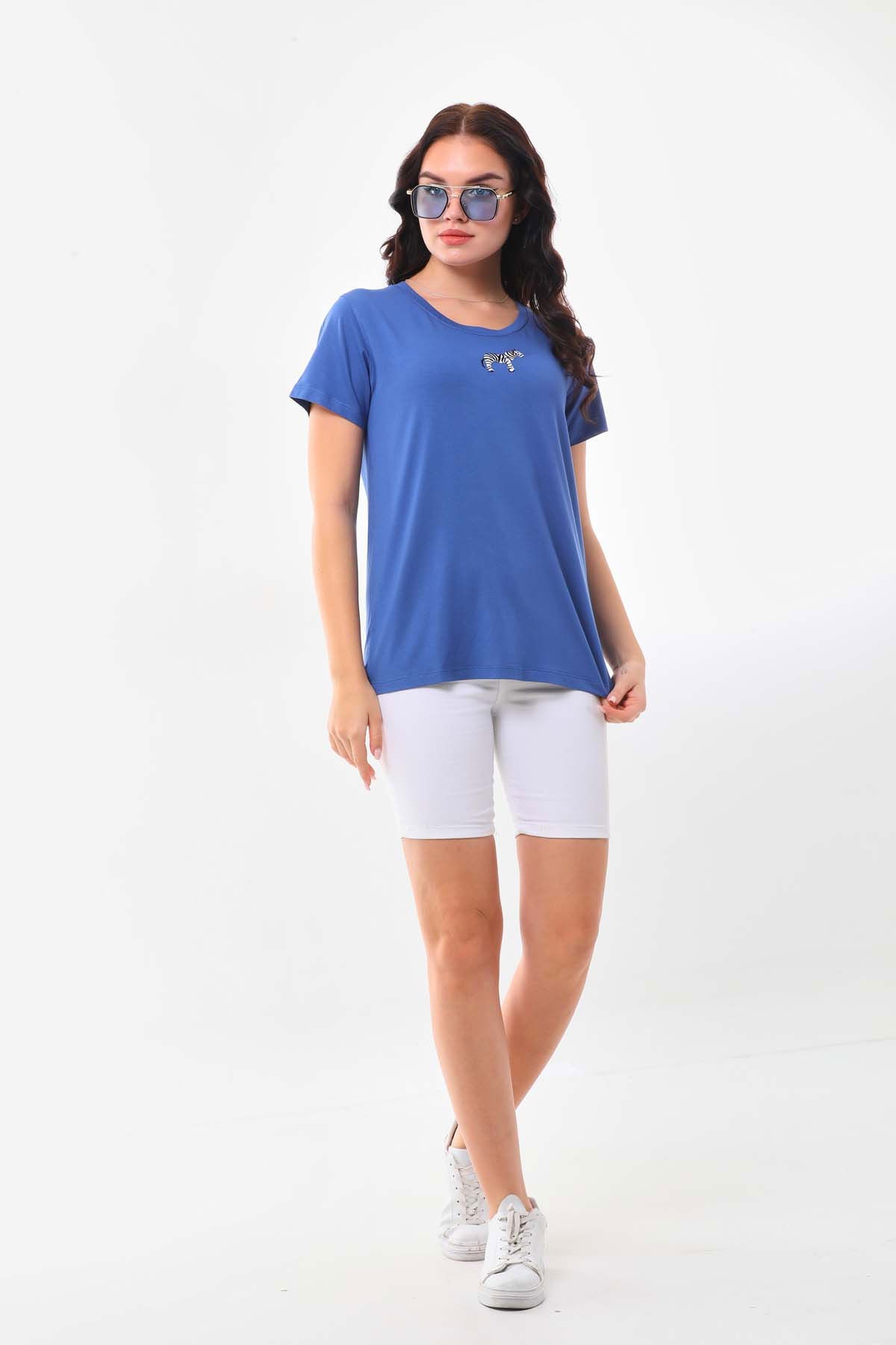 Sistas Kadın Zebra Desenli Kısa Kol Bluz 23118 Indigo