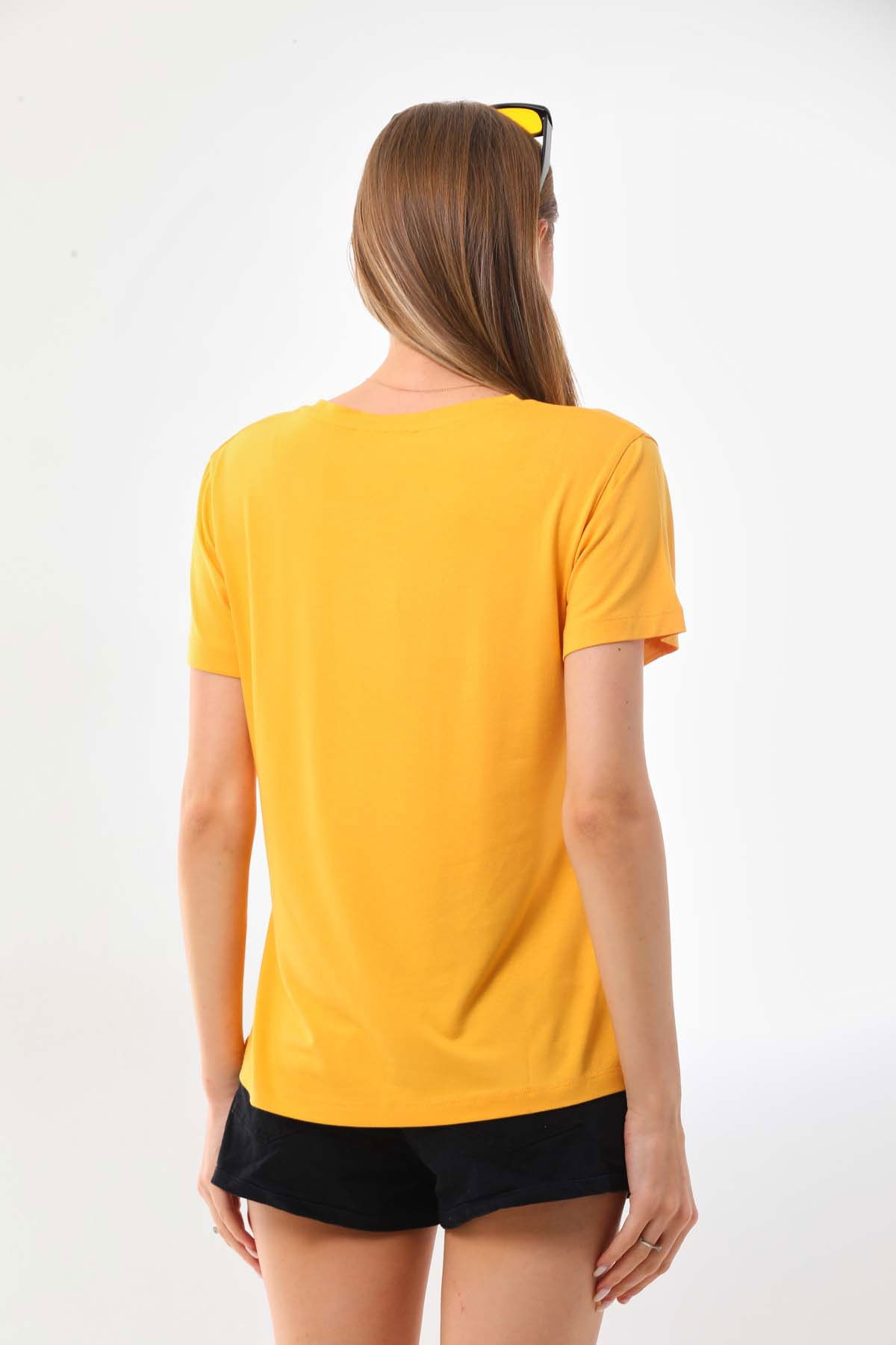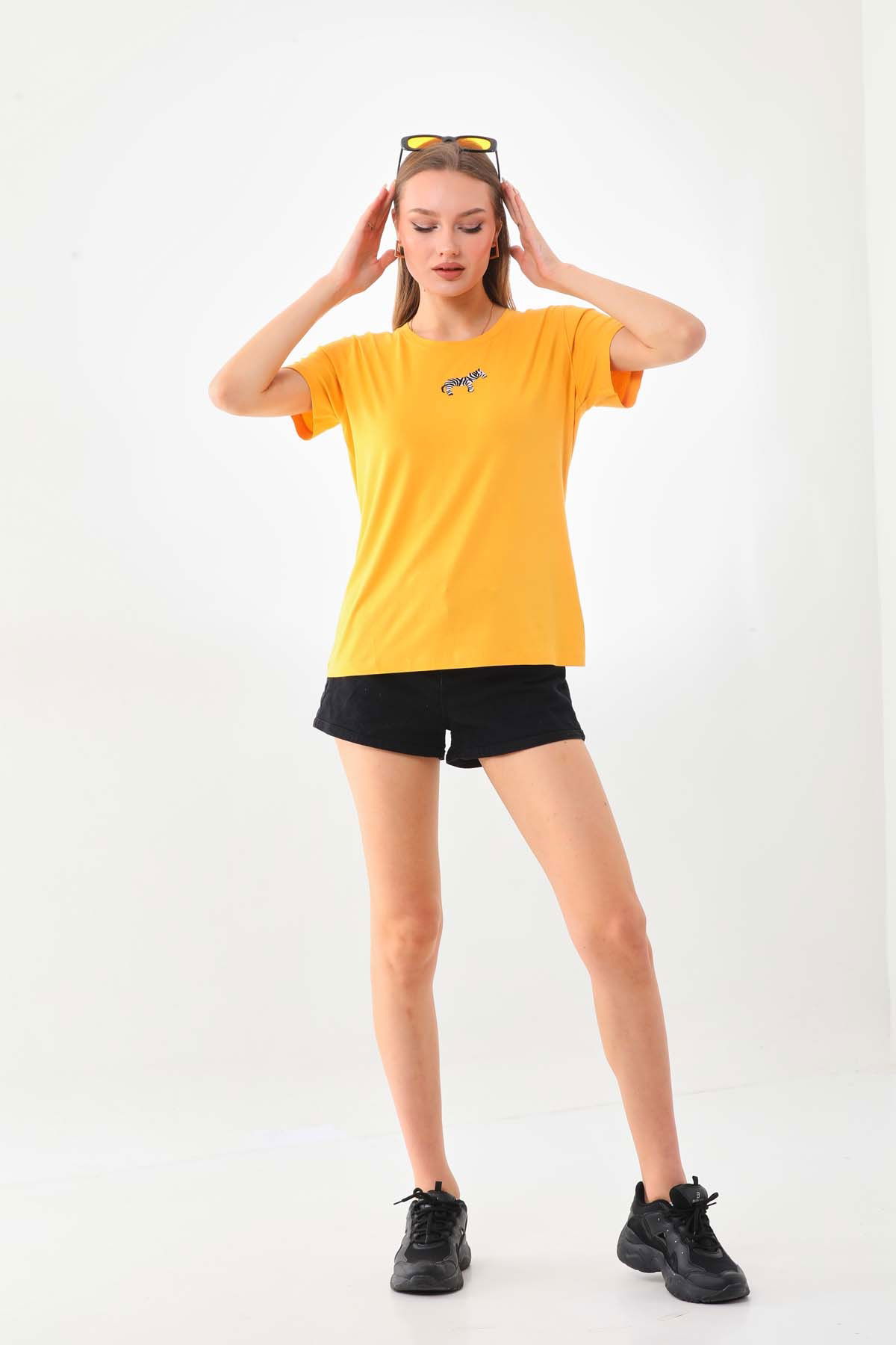 Sistas Kadın Zebra Desenli Kısa Kol Bluz 23118 Sarı