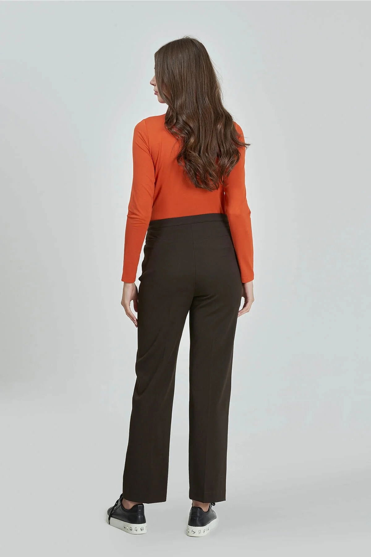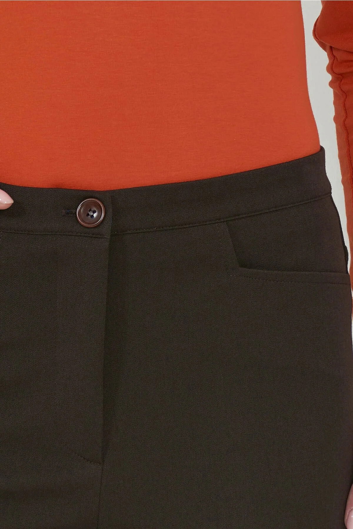 Tolga Saraçoğlu Kadın Gizli Lastik Boru Paça Gabardin Pantolon 430082 Kahverengi