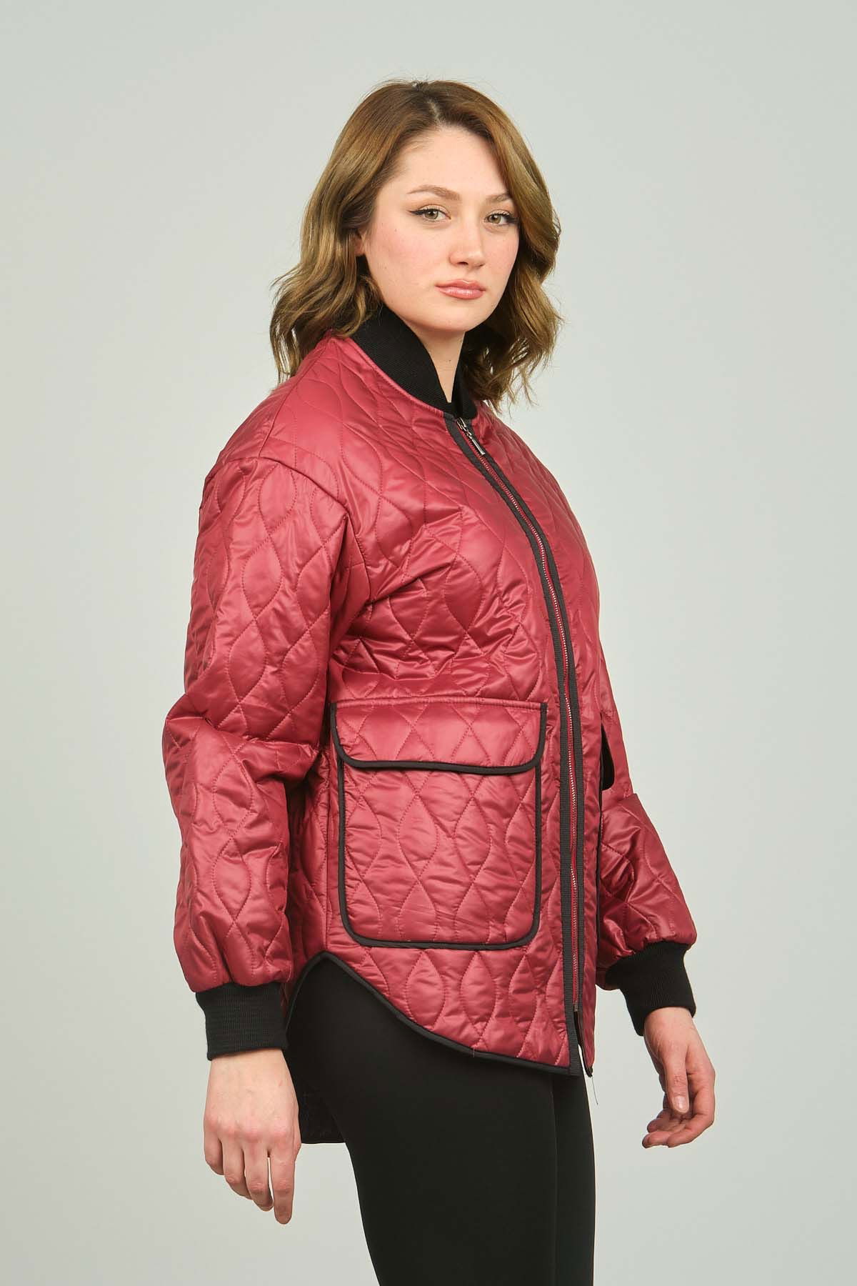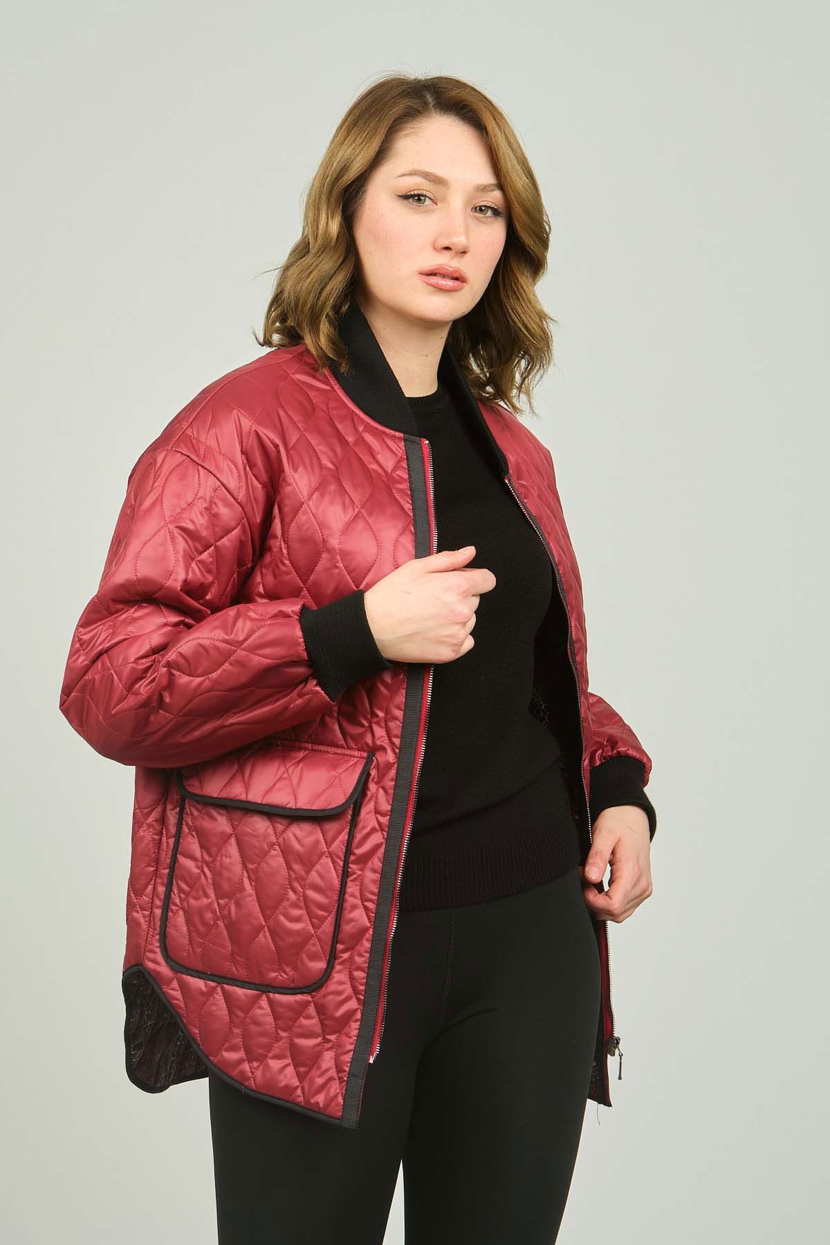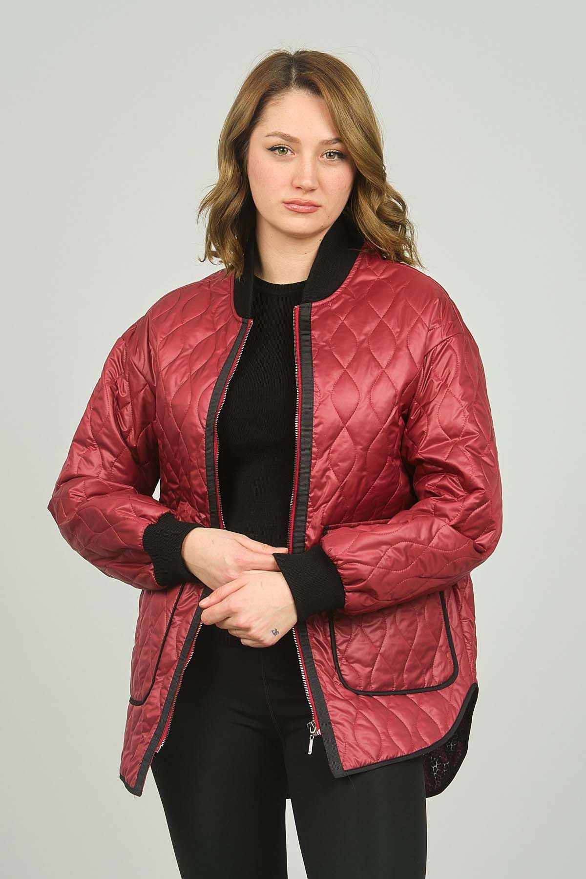Veger Kadın Kolej Yaka Fermuarlı Mont 3399 Kırmızı