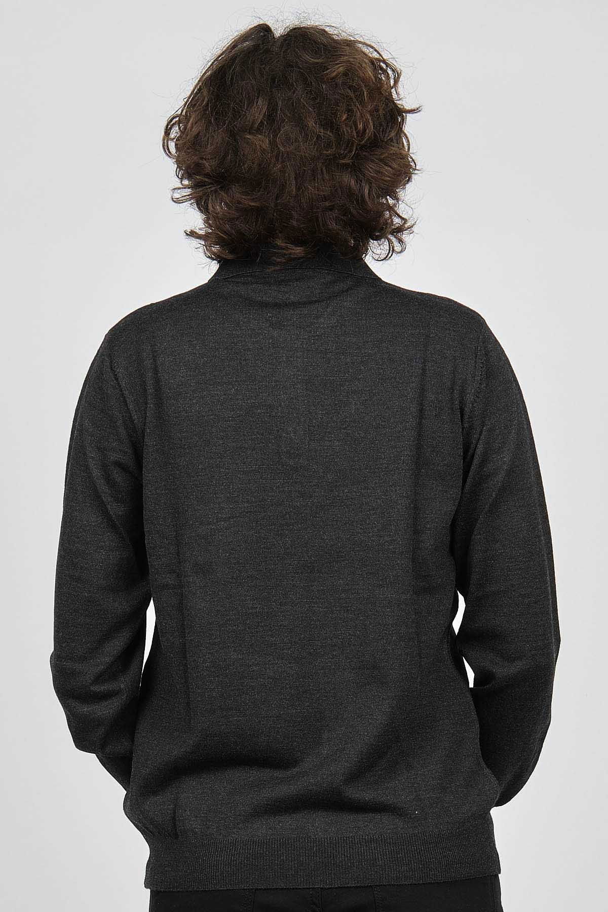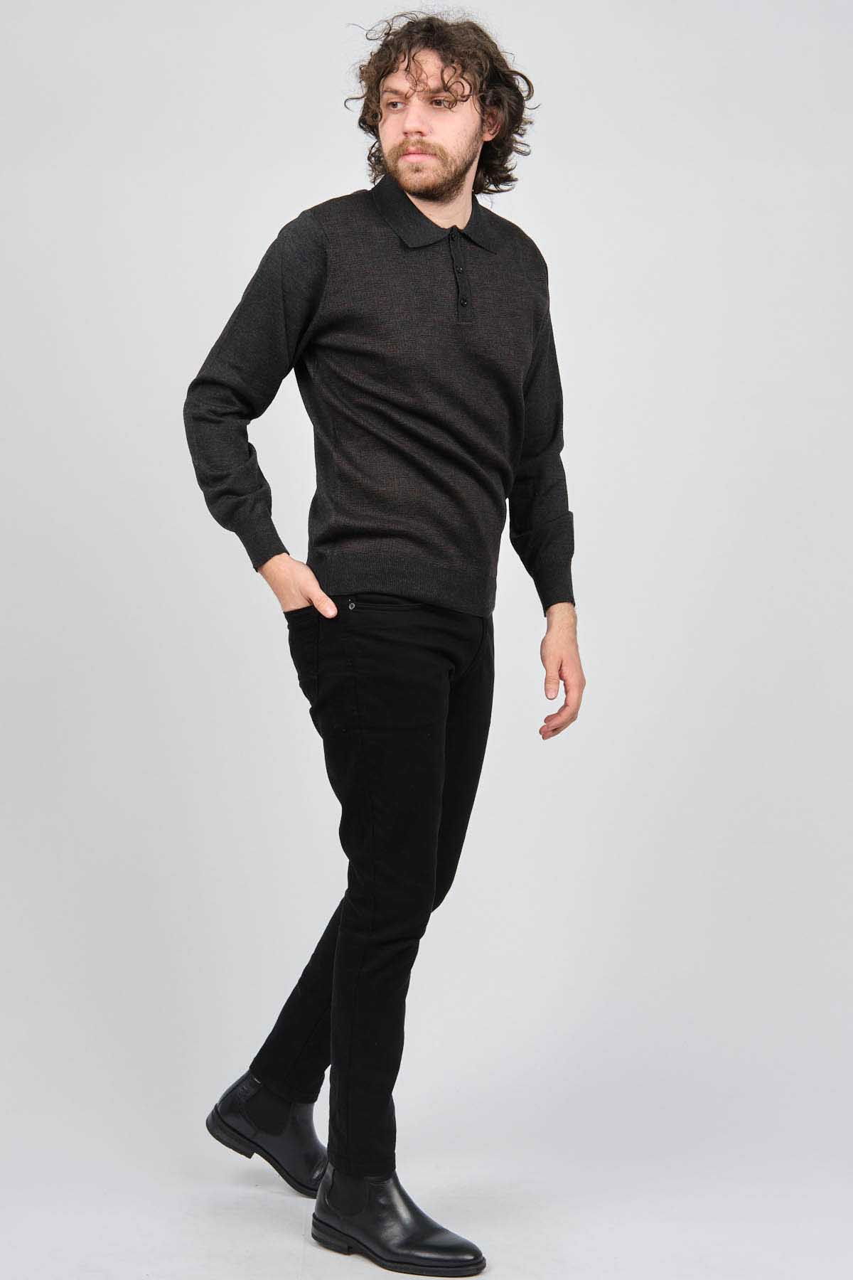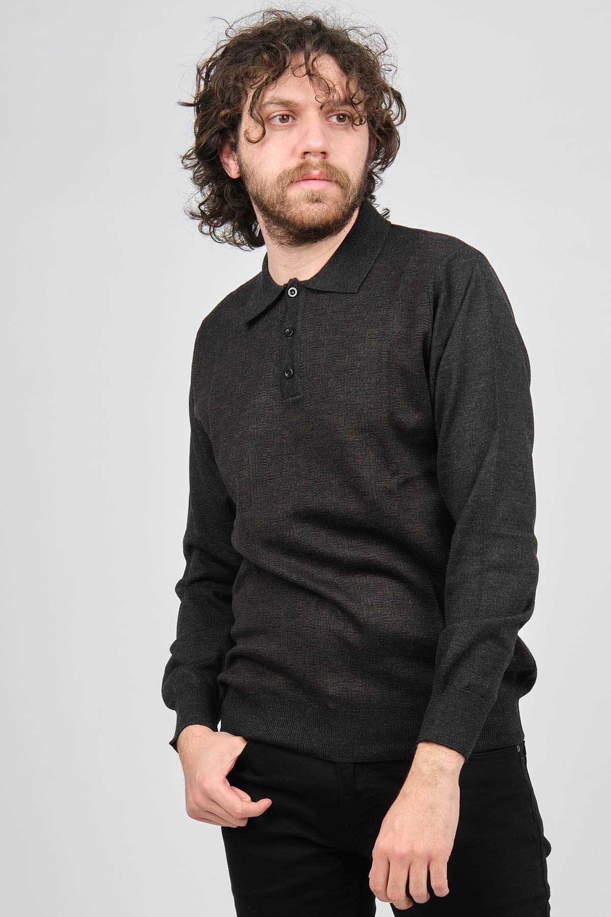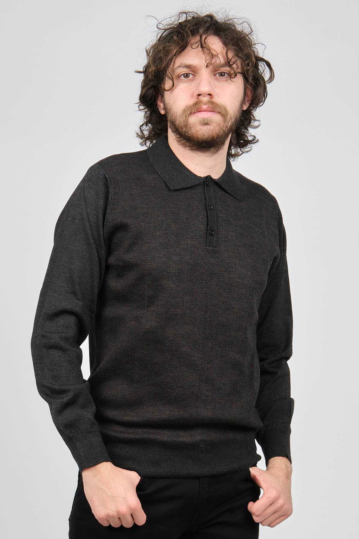 Woolman Erkek Desenli Polo Yaka Yün Kazak 1572001 Füme