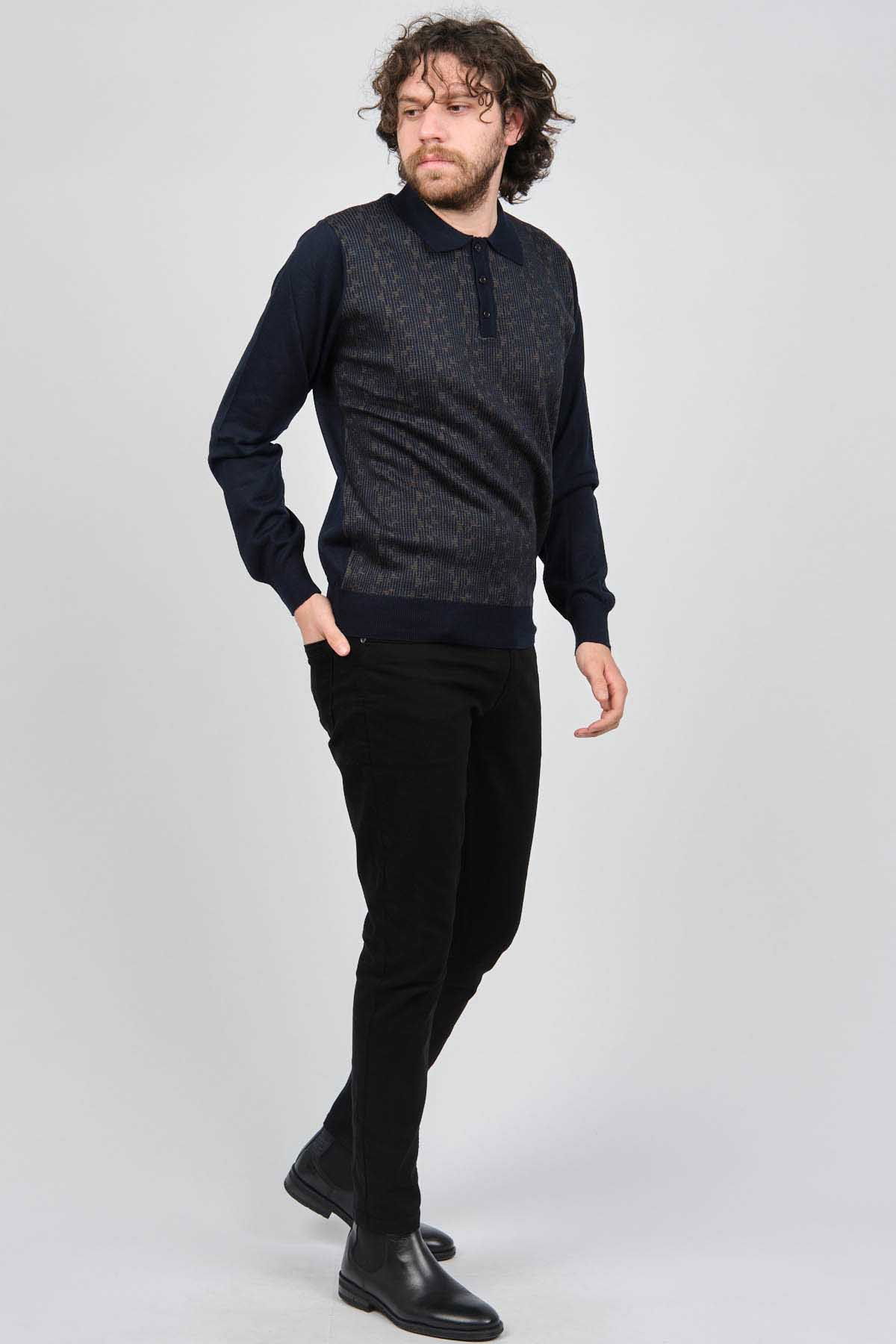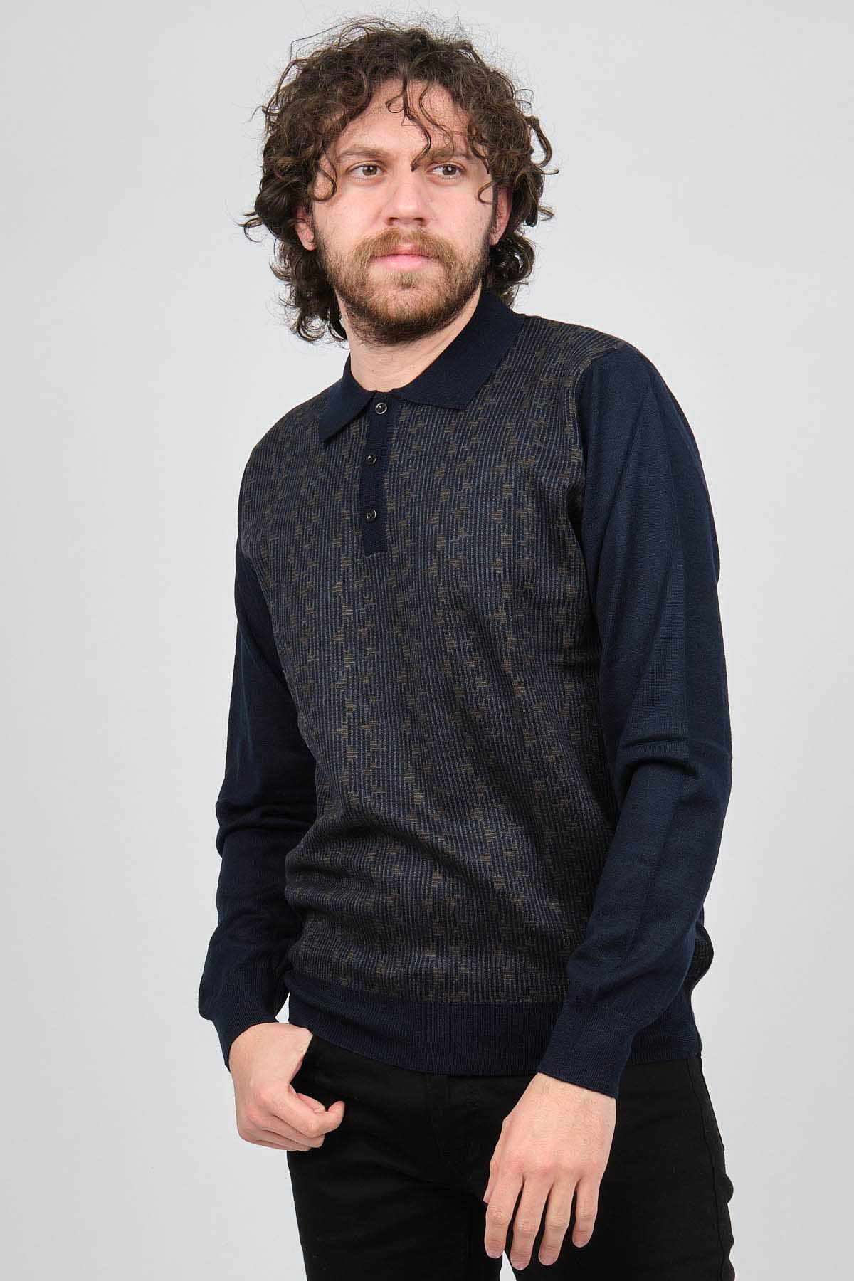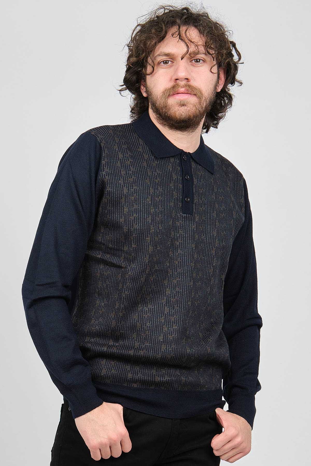 Woolman Erkek Desenli Polo Yaka Yün Kazak 1572001 Lacivert